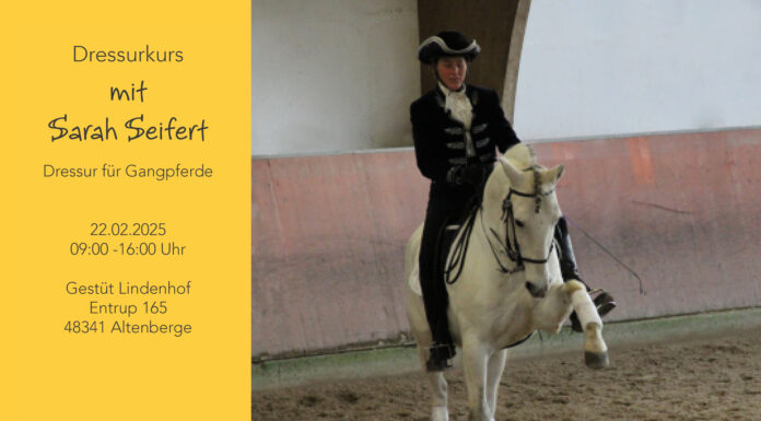 Wir freuen uns, eine Dressur-Koryphäe für einen Kurstag im Münsterland gewonnen zu haben. Sarah Seifert (Trainerin A der...