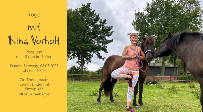 Was bietet der Kurs?Yoga angelehnt ans Vinyasa Yoga abgestimmt auf die Ansprüche, die die Zusammenarbeit mitunseren Pferden an uns...