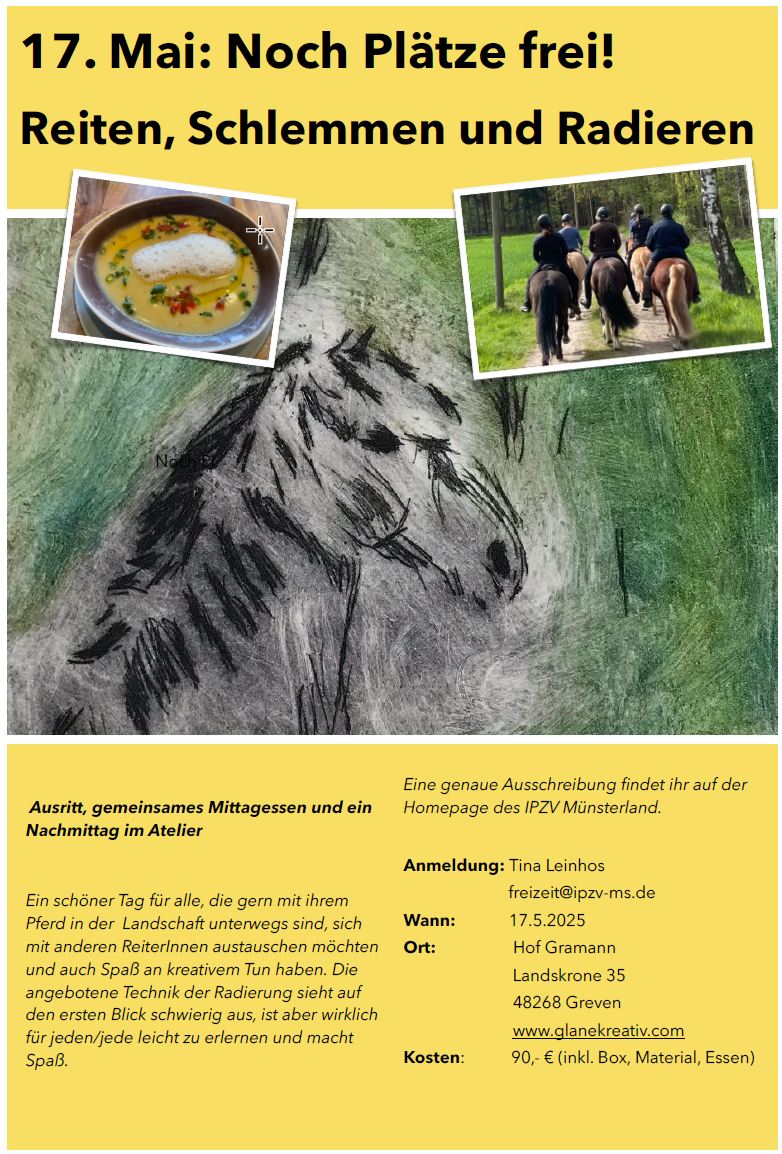 Reiten – Schlemmen -Radieren – Anmeldungen noch möglich